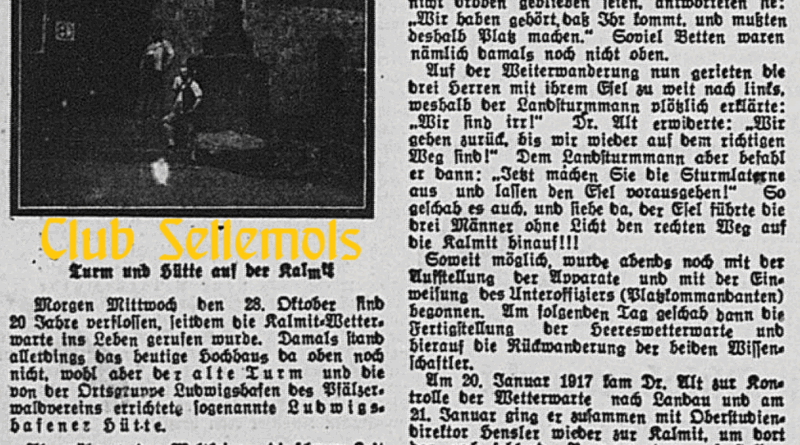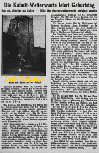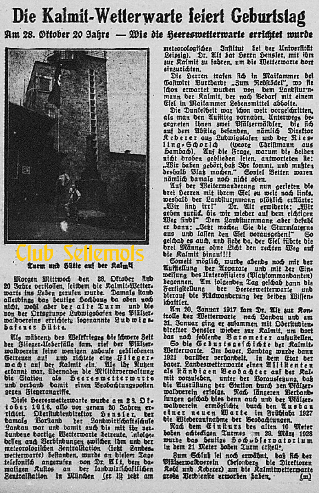 Zum Schluß sei noch erwähnt, daß sich der Pfälzerwaldverein (besonders die Direktoren Kohl und Kederer) um die Kalmitwetterwarte große Verdienste erworben haben. (m)