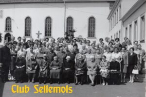 Frauenbund 1968. Katharina Schädler sitzt in der ersten Reihe, 3.von rechts (hellgraue Kleidung). Ganz links Pfarrer Werner Seither.