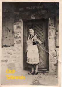 Anna Thirolf in der weißen Schürze, vermutlich nach 1956, denn im Juli 1956 verstarb ihr Mann Adolf Thirolf.